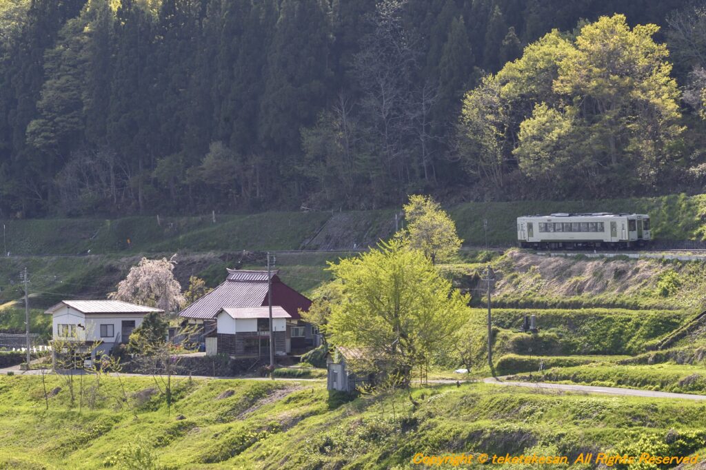 斜光線 鉄道 2025.08.16 夕方の斜光線に浮かび上がる新緑と、たたずむ古民家。あまりの美しさに一瞬で心を奪われた。永遠に続いてほしい風景だ。 飯山線 上境~戸狩野沢温泉間 2025年5月5日撮影 共有: Facebook で共有するにはクリックしてください (新しいウィンドウで開きます) Facebook クリックして X で共有 (新しいウィンドウで開きます) X いいね:いいね 読み込み中… 関連